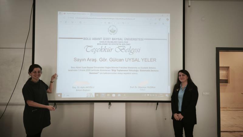 03.12.2025 tarihinde BAİBÜ Beslenme ve Diyetetik Bölümü tarafından düzenlenen “Bilgi Toplamanın Yolculuğu: Sistematik Derleme” başlıklı akademik seminer fakültemiz öğretim üyelerinin katılımlarıyla Sağlık Bilimleri Fakültesi C Blok Derslik 4’te gerçekleştirilmiştir. Etkinlikte Arş. Gör. Gülcan Uysal Yeler sistematik derleme konusunda sunum yapmıştır.